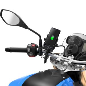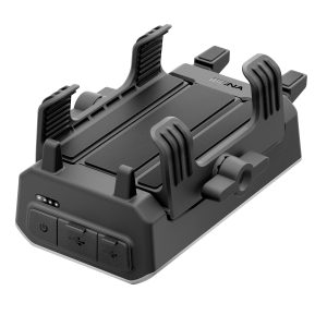 Want to charge your phone while you ride but you don’t want to take your whole bike apart to run a charging cable from the battery? The Sena PowerPro Mount has the power already built in. It’s a portable power supply with a clamping arm for your handlebar and another rock solid clamp for your phone or GPS. The integrated lithium ion power pack has a 10,000mAh capacity meaning it’s good for about five smart phone completely-dead-to-100%-charged cycles before the PowerPro itself needs to be charged back up. The PowerPro charges up off of any USB-outlet charger using it’s included micro USB charging cable.