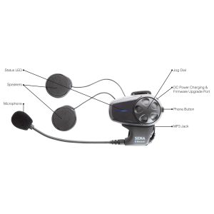 The SMH10 is a Bluetooth v3.0+EDR Class 1 Stereo Headset with long-range Bluetooth Intercom designed specifically for motorcycles. With the SMH10, you can call hands-free on your Bluetooth mobile phone, listen to stereo music or voice instructions of GPS navigations by Bluetooth wirelessly, and have intercom conversations in full duplex with a passenger or other motorcycle riders. Thanks to the latest Bluetooth v3.0+EDR and the advanced digital processing technology, the Sena SMH10 bluetooth 3.0 offers the best sound quality for both incoming and outgoing sound in its class. Also, the easy-to-access and intuitive button operations make the SMH10 a perfect companion for motorcycles.